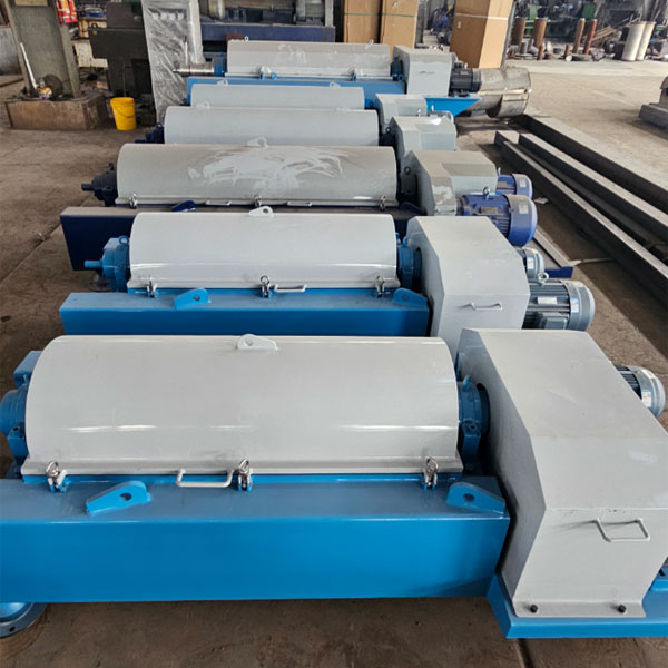 Барабан и шнек вращаются с высокой скоростью с заданной разницей скоростей. Материал поступает в камеру подачи шнека через подающую трубу, ускоряется через распределительные отверстия и поступает в барабан. Под действием центробежной силы более тяжелые твердые фазы оседают на стенках барабана, образуя слой осадка. Шнековый конвейер непрерывно проталкивает осажденные твердые частицы к коническому концу барабана. Эти твердые частицы проходят через зону сушки и выбрасываются из машины через разгрузочное отверстие. Более легкая жидкая фаза образует внутреннее жидкое кольцо, непрерывно переливающееся из переливного отверстия большого конца барабана и выходящее из машины через разгрузочное отверстие в корпусе.